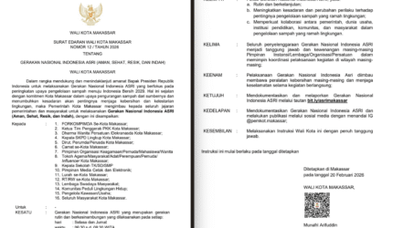 Sejalan Arahan Presiden Prabowo, Pemkot Makassar Canangkan Gerakan ASRI Tiap Selasa dan Jumat