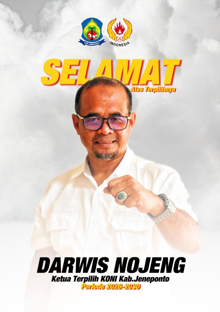 Jeneponto, allnatsar.id – Komite Olahraga Nasional Indonesia Kabupaten Jeneponto resmi memiliki ketua baru. Darwis Nojeng terpilih secara aklamasi sebagai Ketua KONI Jeneponto dalam forum yang digelar pada Senin, 27 April 2026.