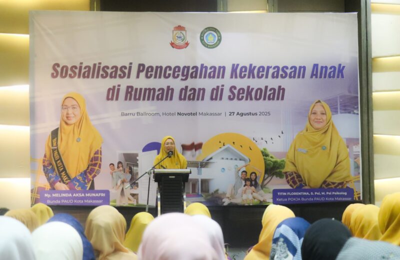 Hal itu disampaikan Melinda saat membuka kegiatan Sosialisasi Lencegahan Kekerasan Anak di Rumah dan di Sekolah, yang digelar Pokja Bunda PAUD Kota Makassar di Hotel Novotel, Rabu (27/8/2025).